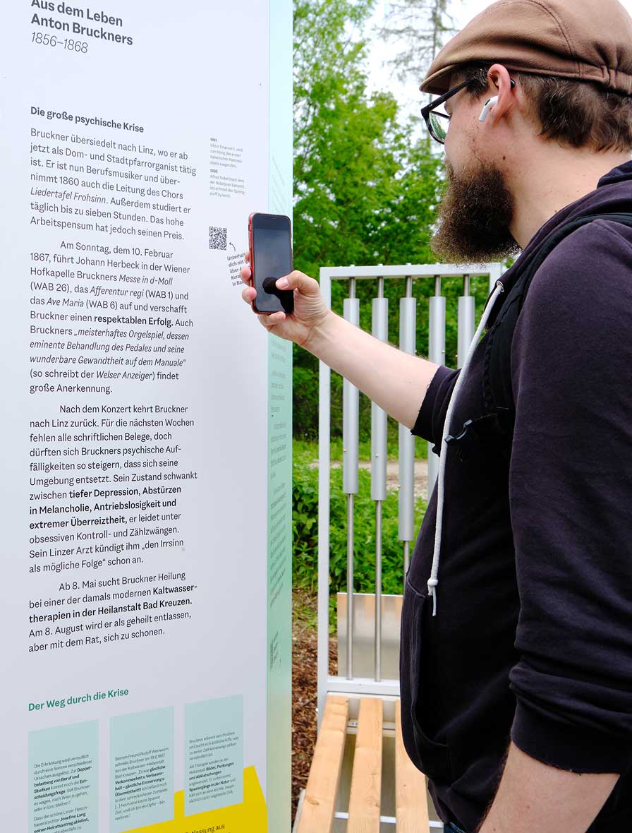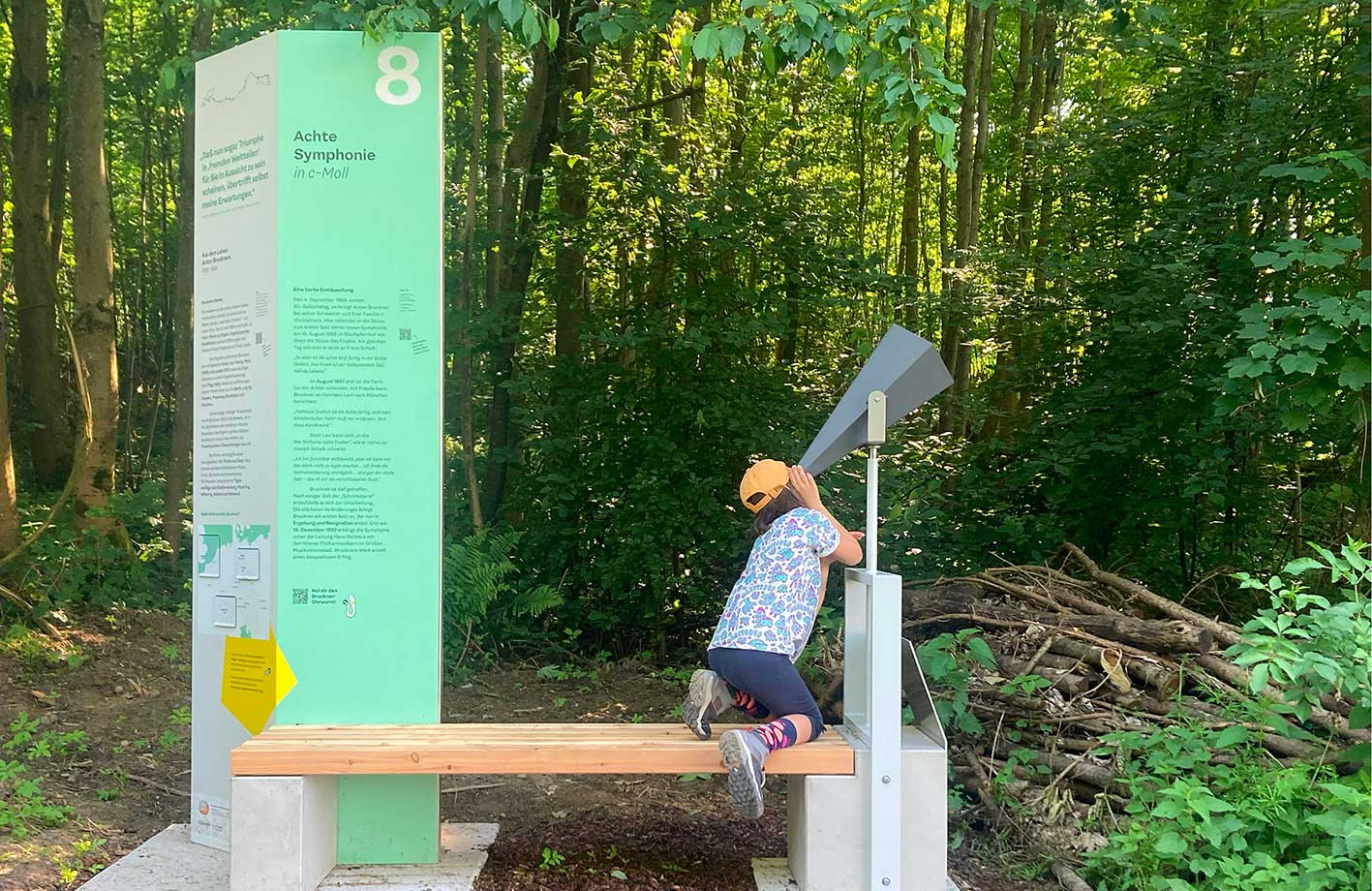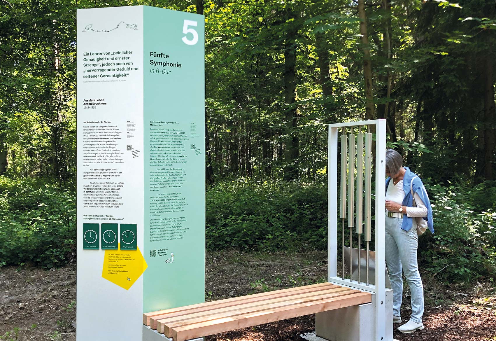 Auf dem Wanderweg zwischen Ansfelden und St. Florian lassen sich Bruckners Symphonien aktiv erleben und spielerisch begreifen. Im Frühjahr 2024 werden dazu 13 Erlebnisstationen errichtet, die einen haptisch-sinnlichen Zugang zu Bruckners symphonischen Werken bieten. Interaktive Spiele regen die Wanderer dazu an, sich näher mit dem Leben Bruckners zu befassen und analoge Klangobjekte lassen das Publikum Aspekte seiner Symphonien auditiv erfahren. Die begleitende App leitet thematisch weiter in die Tiefe. Zwei Avatare begleiten die Besucher am Weg. So gewinnt das Ausflugsziel für Bruckner-Kenner:innen und -neugierige, aber auch für ein junges Publikum an Attraktivität.