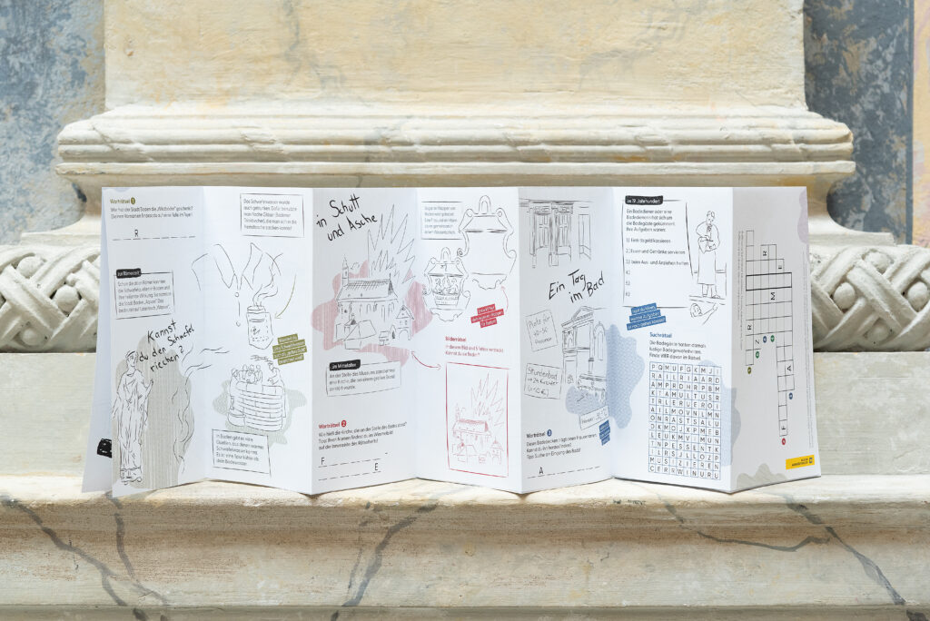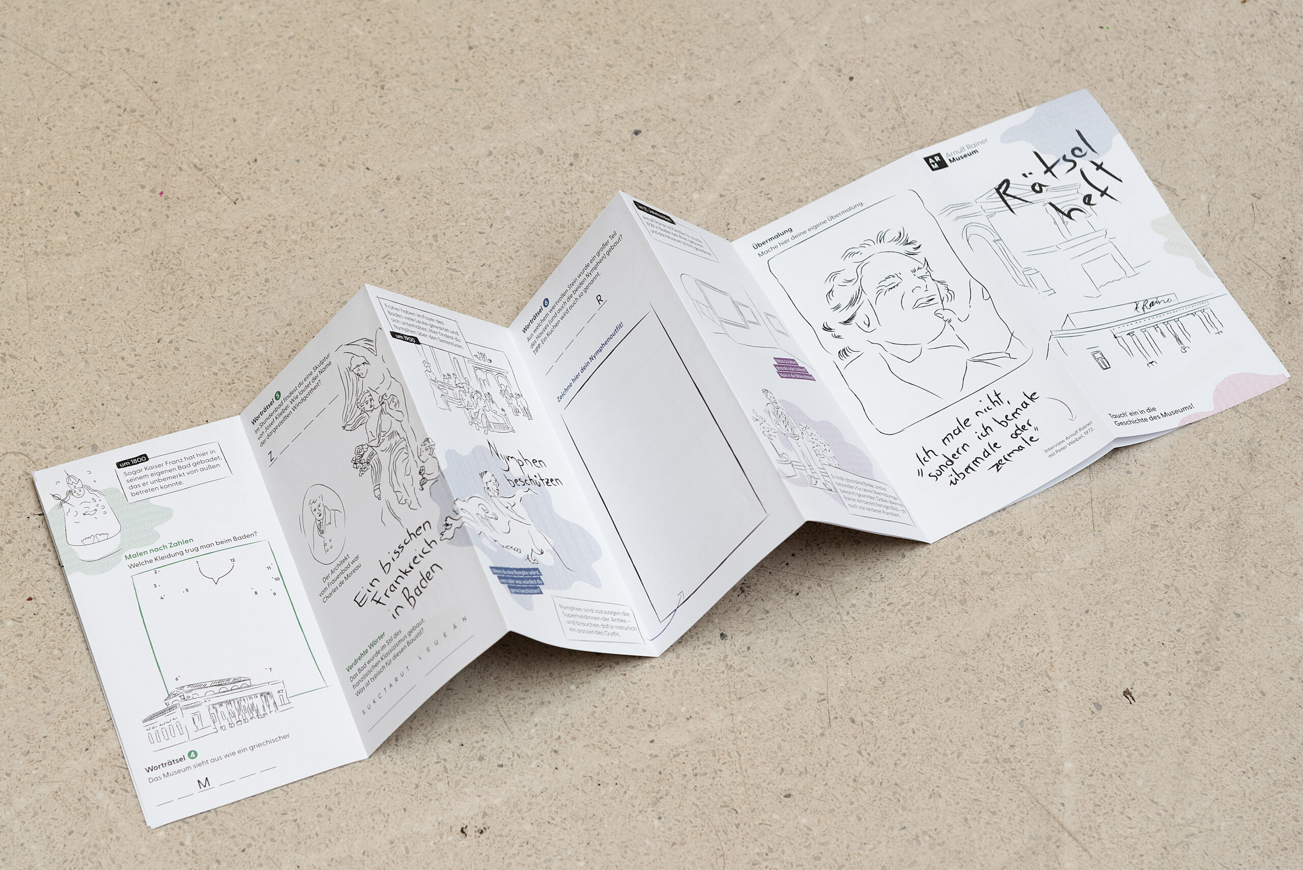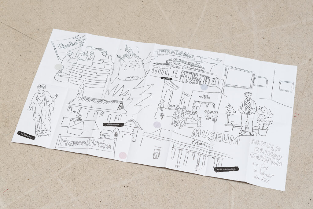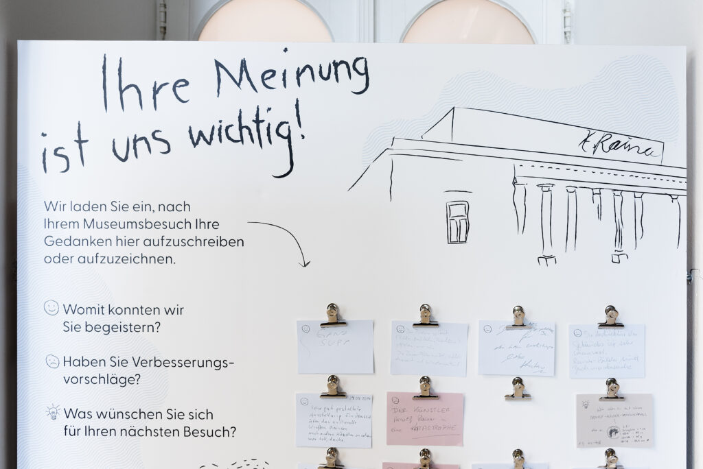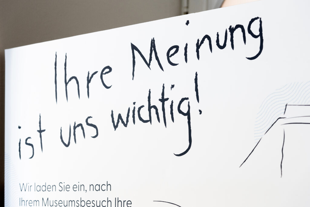 Für das Arnulf-Rainer-Museum in Baden haben wir ein Folder/Plakat entwickelt, mit dem Kinder die Ausstellungen spielerisch entdecken können. Als Preis gibt es schicke Rubbeltattoos. Um das Feedback der Besucher:innen einholen zu können, entwickelten wir ein Feedbackmodul, das im Foyer des Museums zu konkreten Erfahrungsberichten nach dem Besuch auffordert.