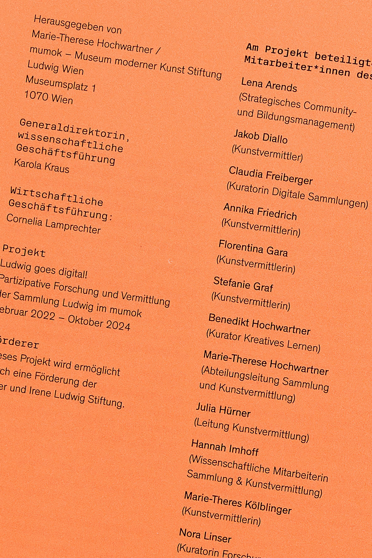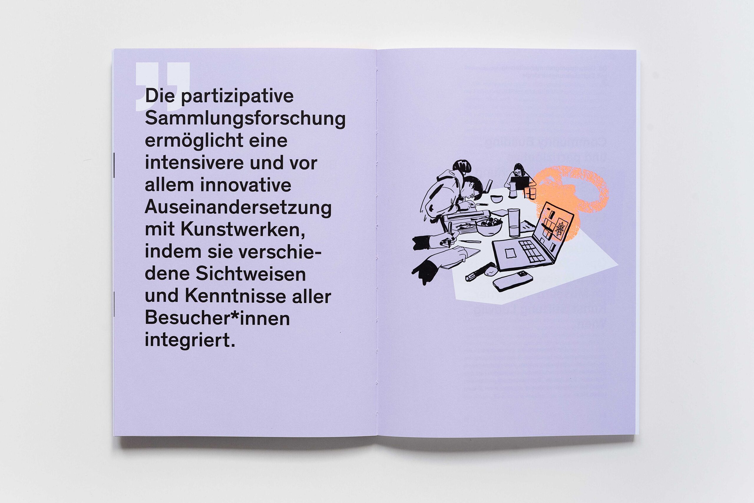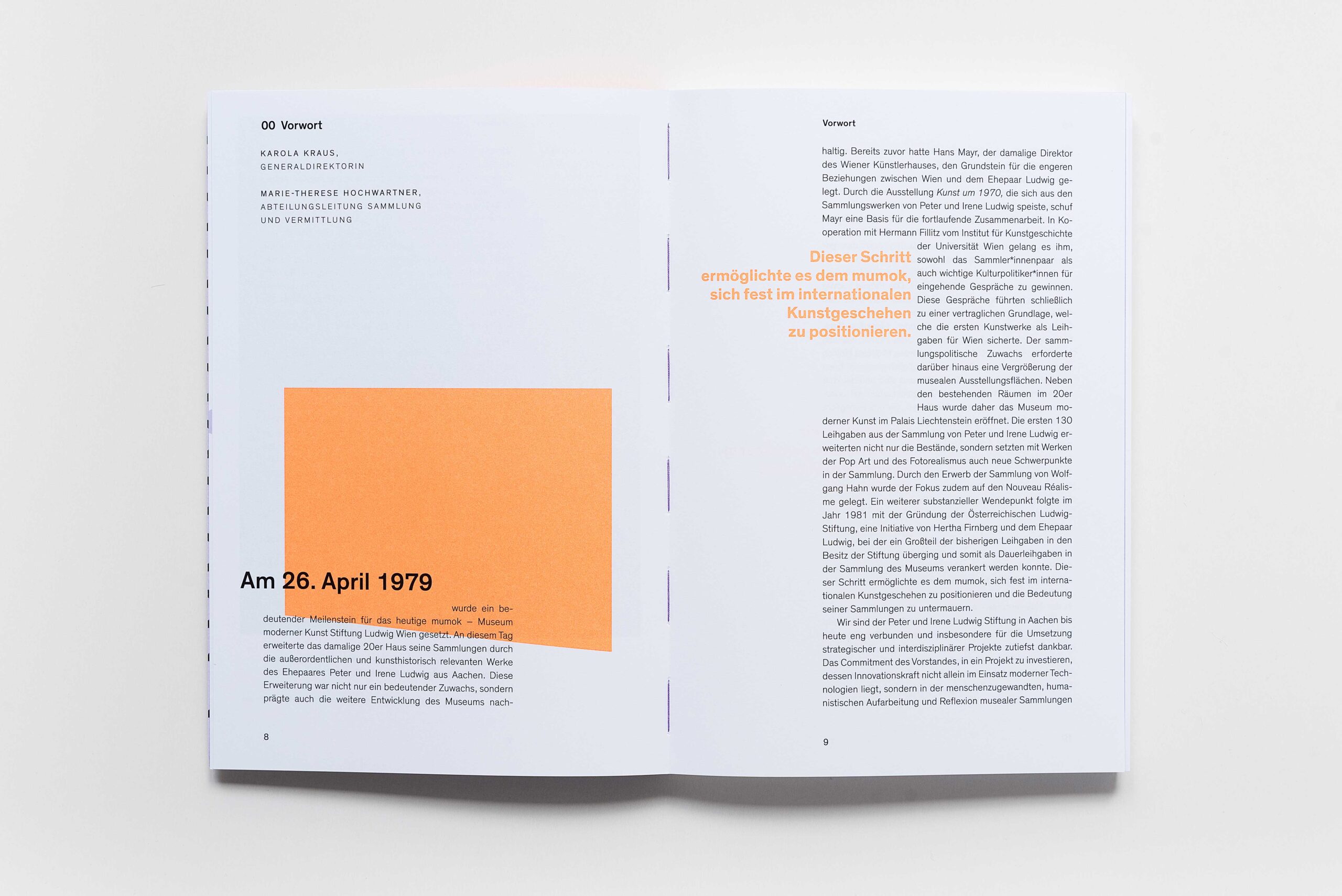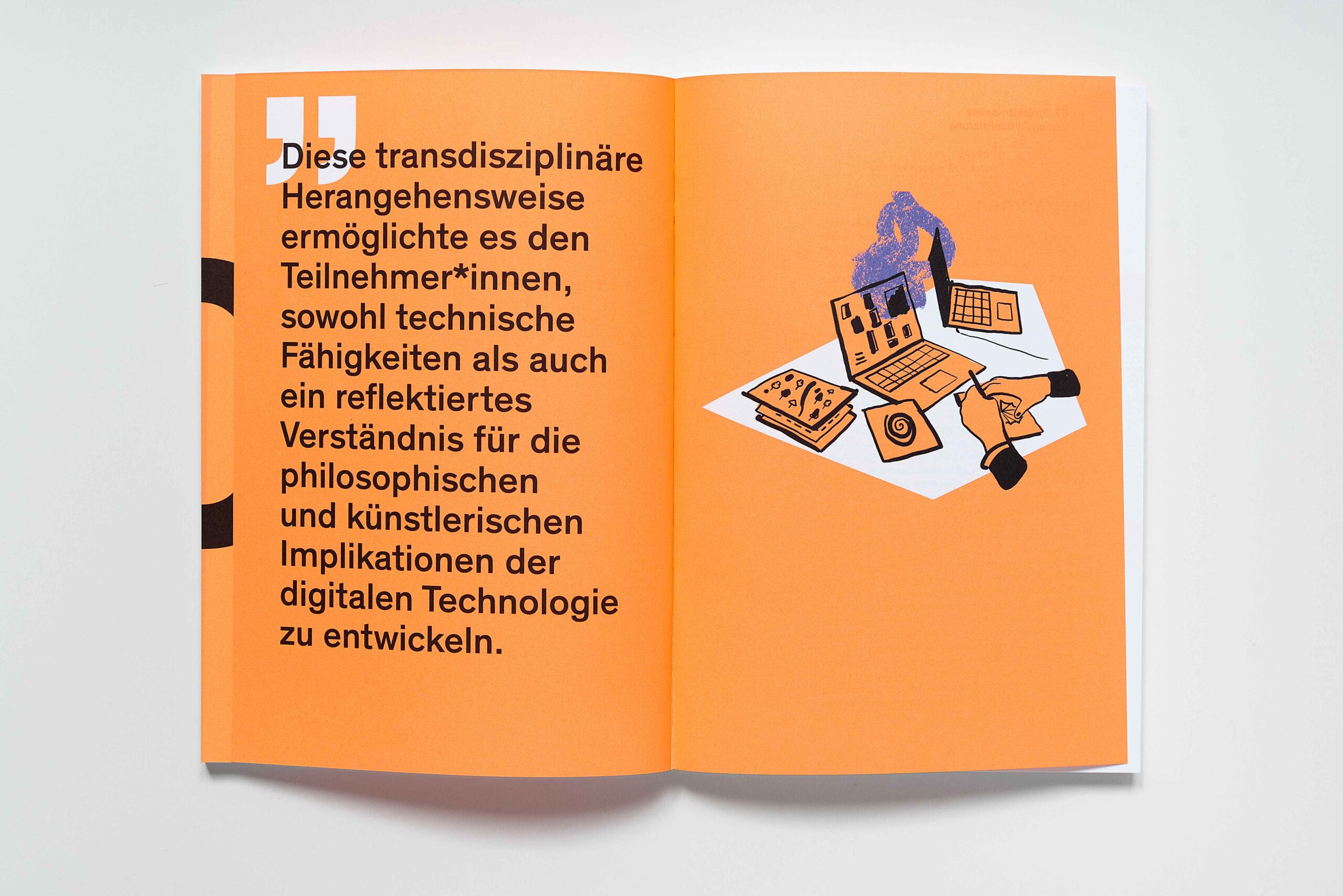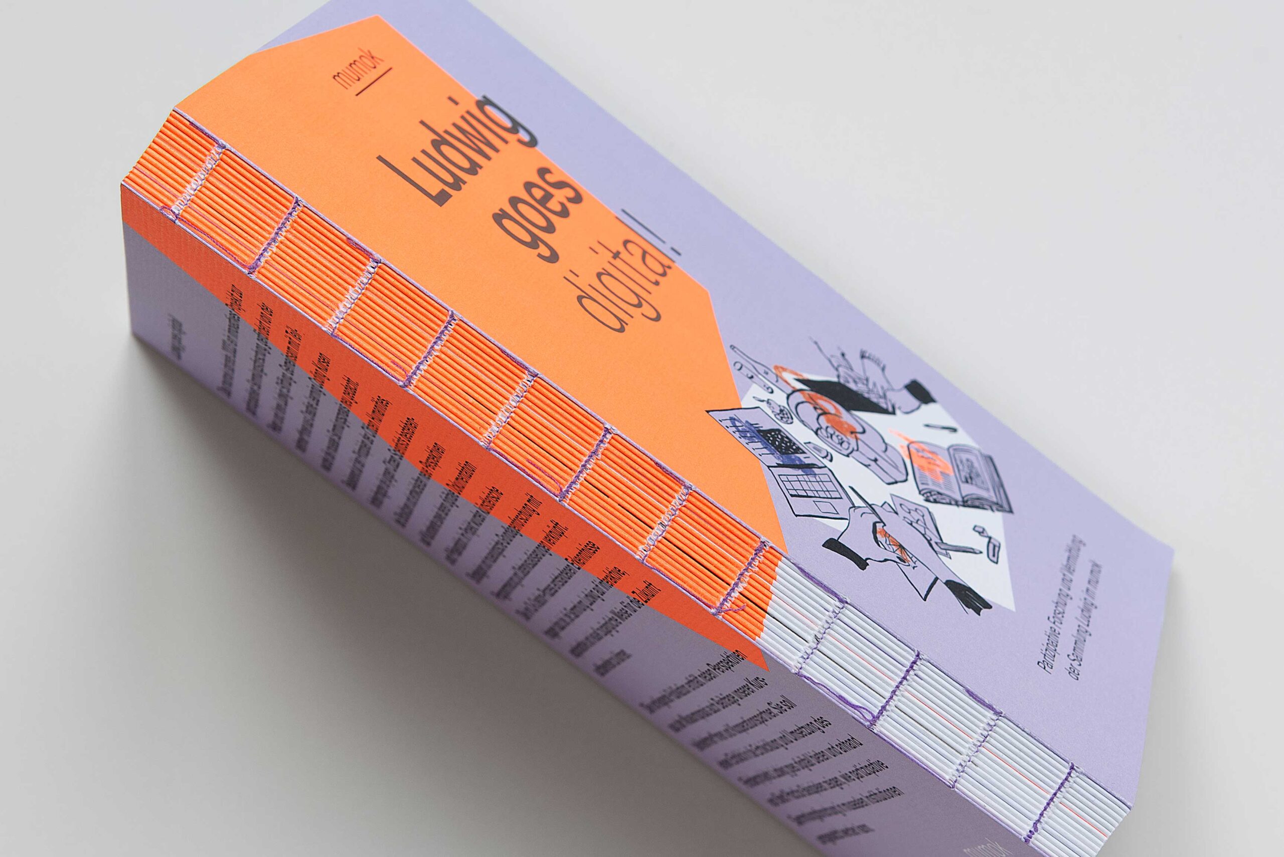 Für das mumok haben wir gemeinsam mit der Illustratorin Stefanie Hilgarth einen Katalog gestaltet, der auf direkte und einfache Weise jene Projekte aus der Vermittlungsabteilung des Museums vorstellt, die eine produktive Brücke zwischen Kunstpädagogik und digitaler Fortbildung schlagen. Dafür haben wir in der Herstellung darauf geachtet, die Publikation zu einem kompromisslos haptischen Objekt zu entwickeln.