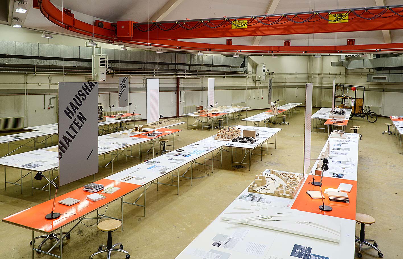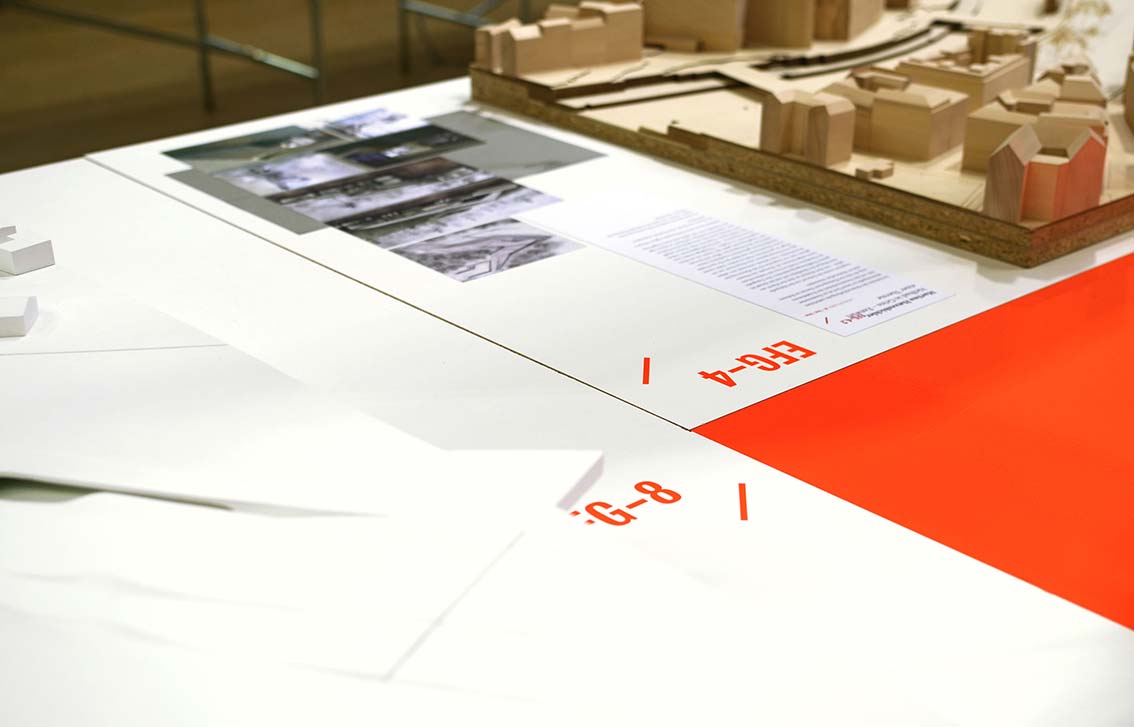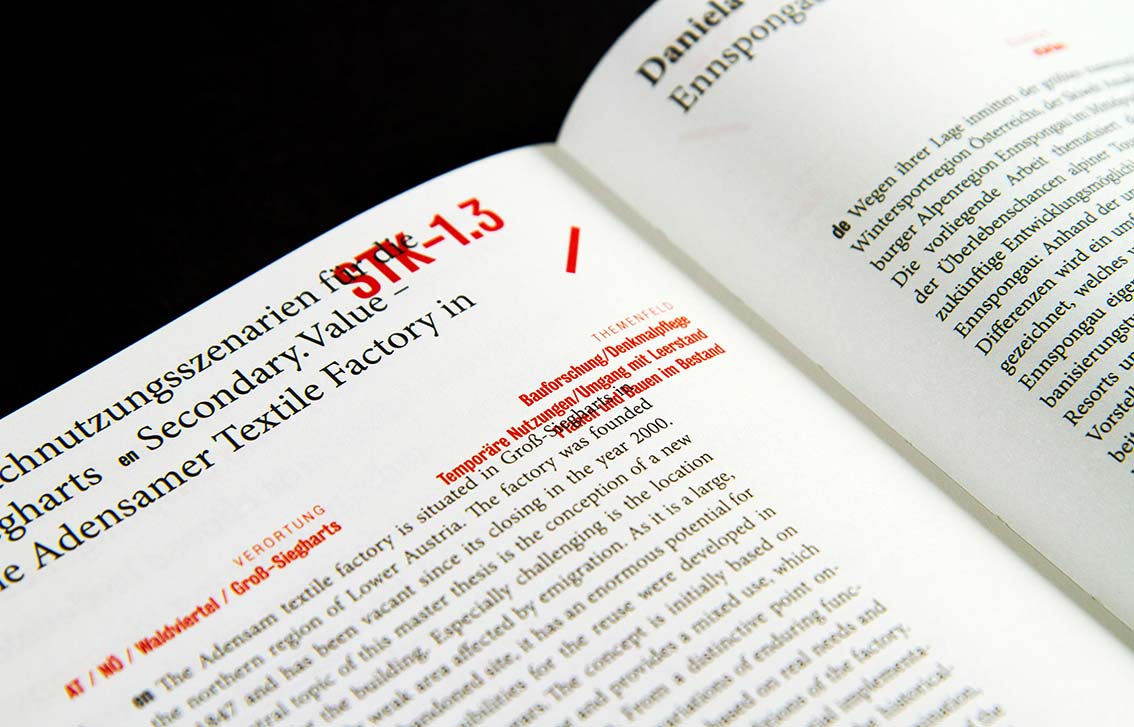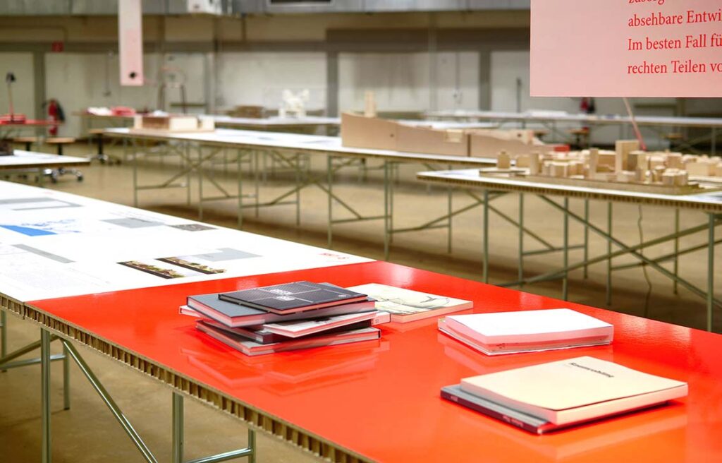In einer großen Industriehalle werden ausgewählte Diplomarbeiten des Studiengangs Architektur und Raumplanung an der TU Wien ausgestellt. Thematisch geclustert, codiert und auf Tischgruppen zueinander in Beziehung gesetzt, eröffnen sich den Besucher:innen neue Blickwinkel und unerwartete und Betrachtungsweisen.